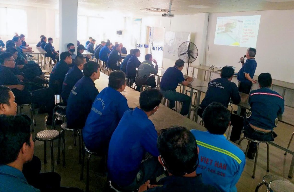 2025년 10월 8일, 안전환경팀에서 “양중 장비 안전” 교육을 진행하였으며, 보 킴 지앙(Võ Kim Giang) 님이 발표를 맡았습니다.