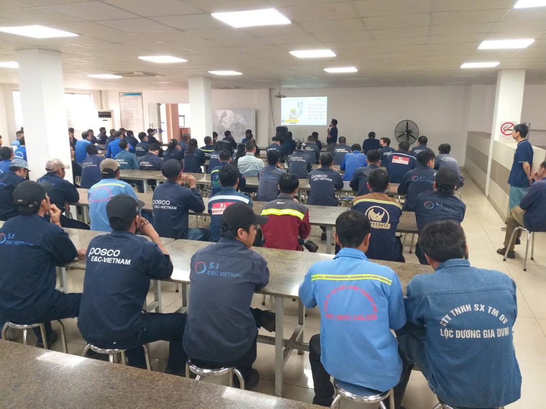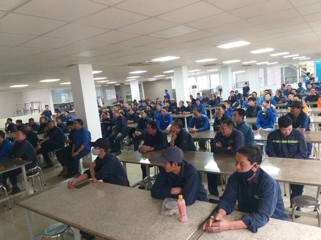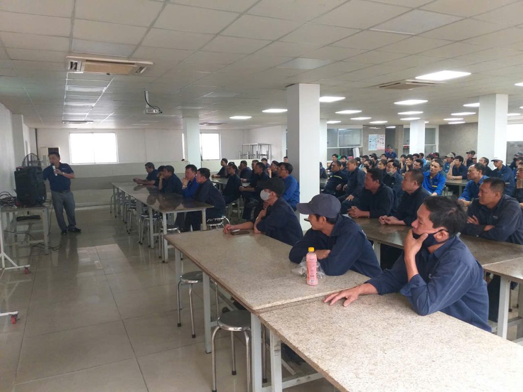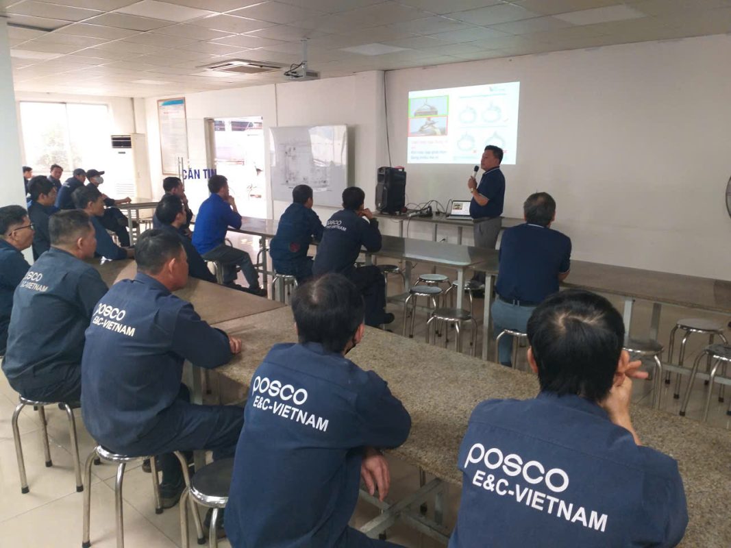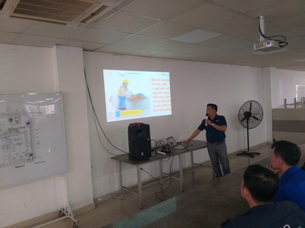 Mr. Vo Kim Giang, the responsible staff member, guided employees on recognizing common hazardous situations and how to respond to incidents that may occur during lifting operations. With the support of illustrative images and real-life examples, employees were able to easily understand and apply the knowledge to their daily tasks.